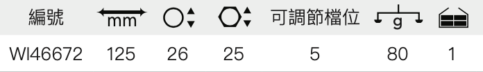 可夾持最大直徑為26mm的圓管和對邊25mm的六角螺母或螺栓。