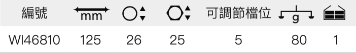 可夾持最大直徑為26mm的圓管和對邊25mm的六角螺母或螺栓。