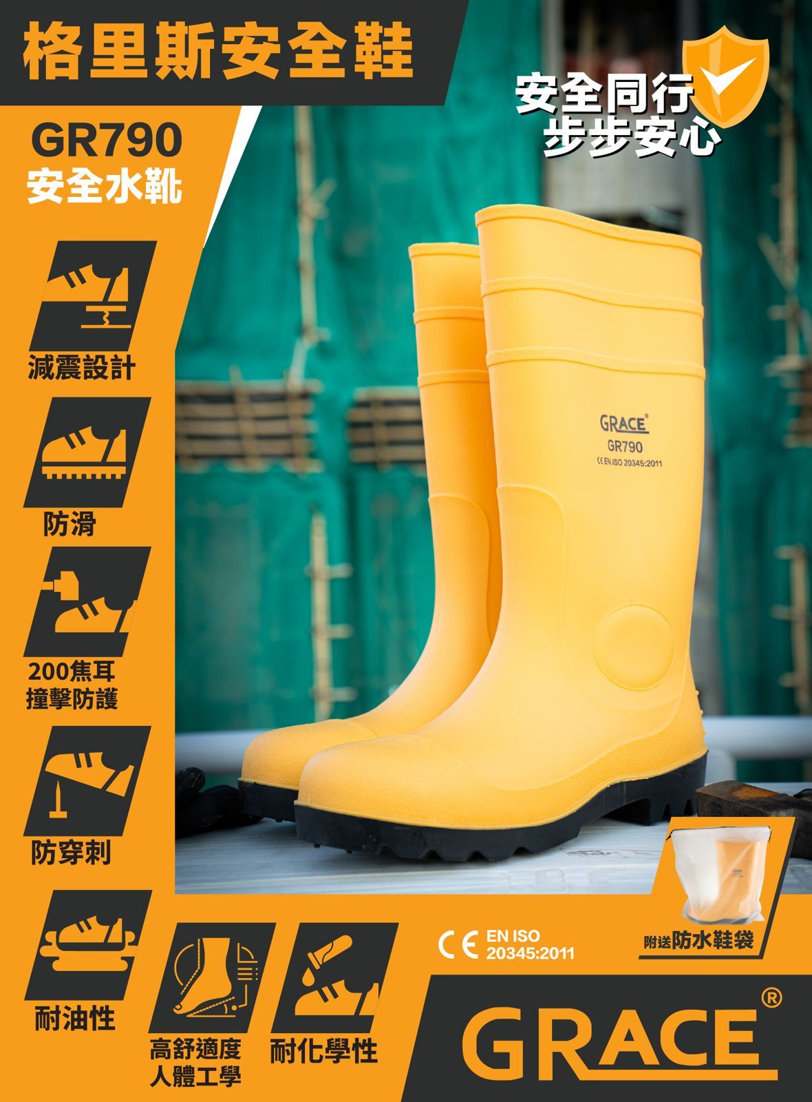 專業防護,專注每一步。格里斯安全鞋以國際認證品質與人體工學設計,守護工作時的足部安全與舒適。