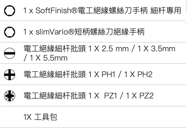 與緊湊型螺米起子配套細杆頭使用,帶常規和短柄兩把螺絲刀手柄