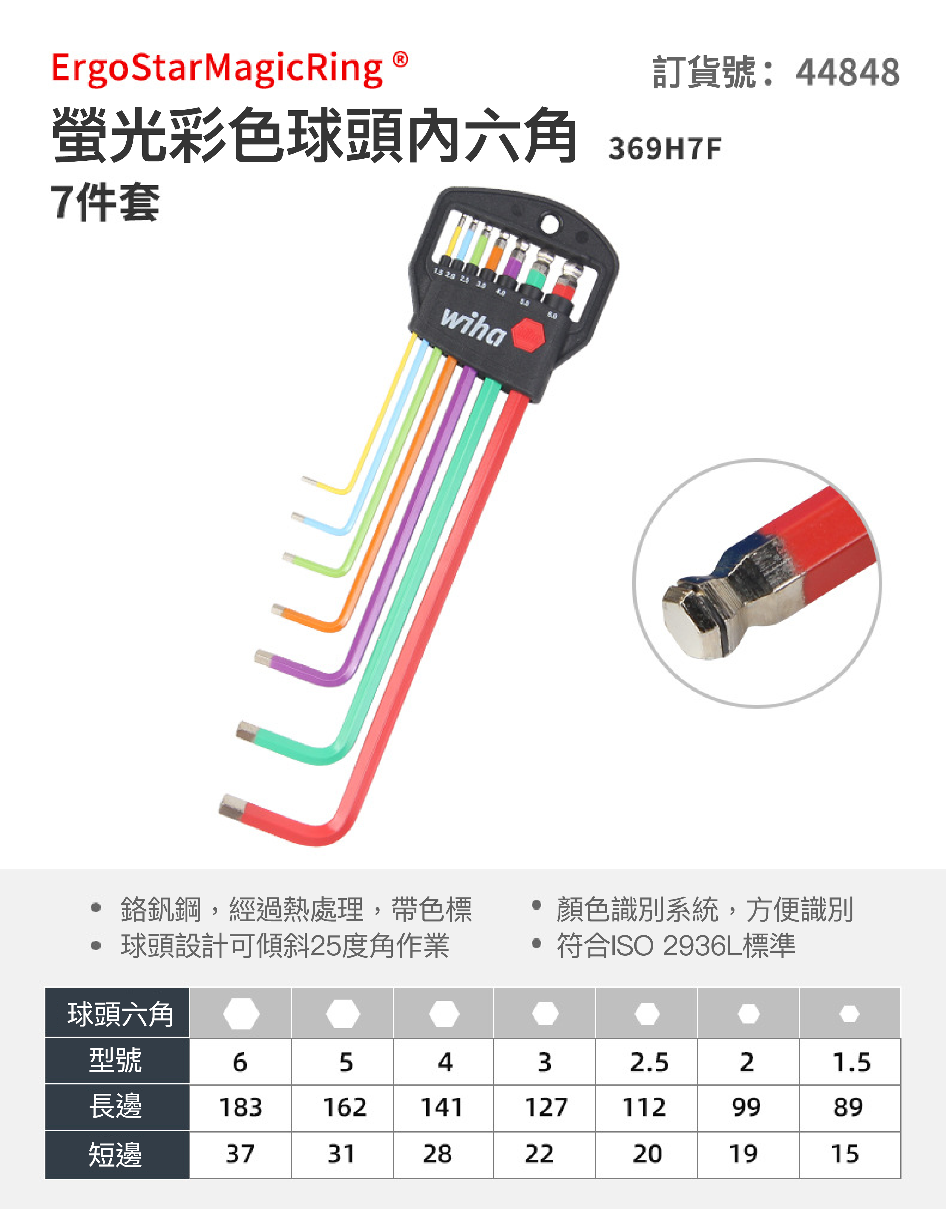 WIHA 44848 Classic 彩色球頭內六角扳手7件套