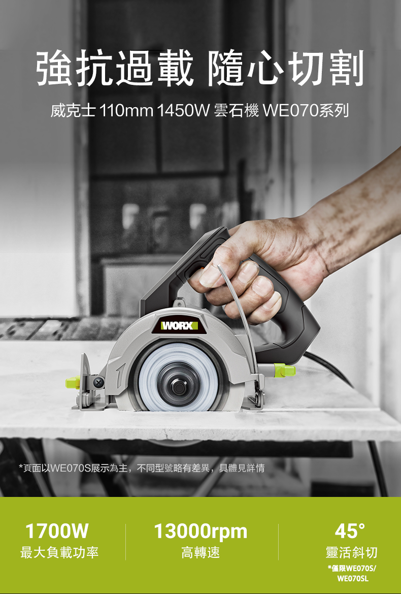 WORX WE070S / WE070SL 1400W 220V/110V 雲石機