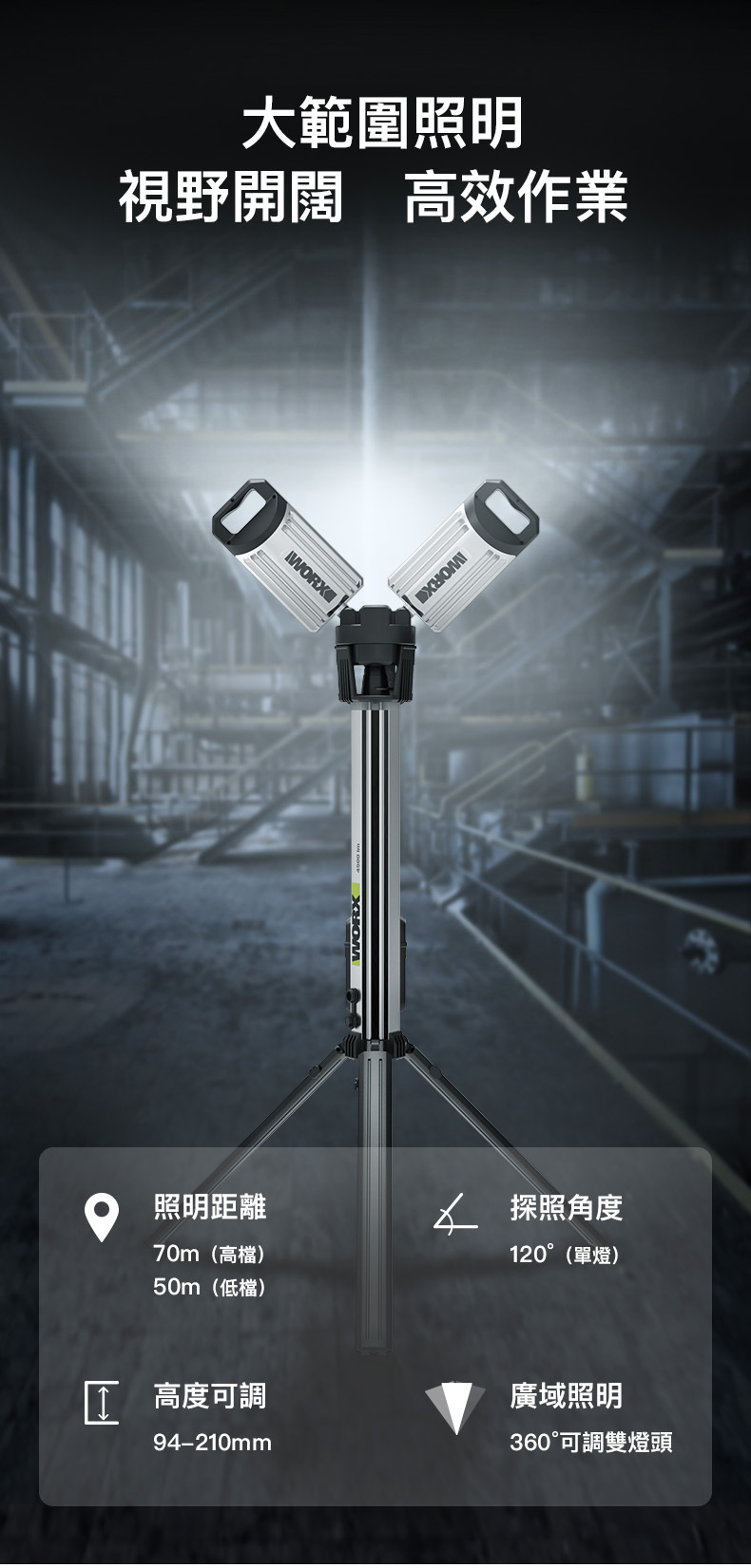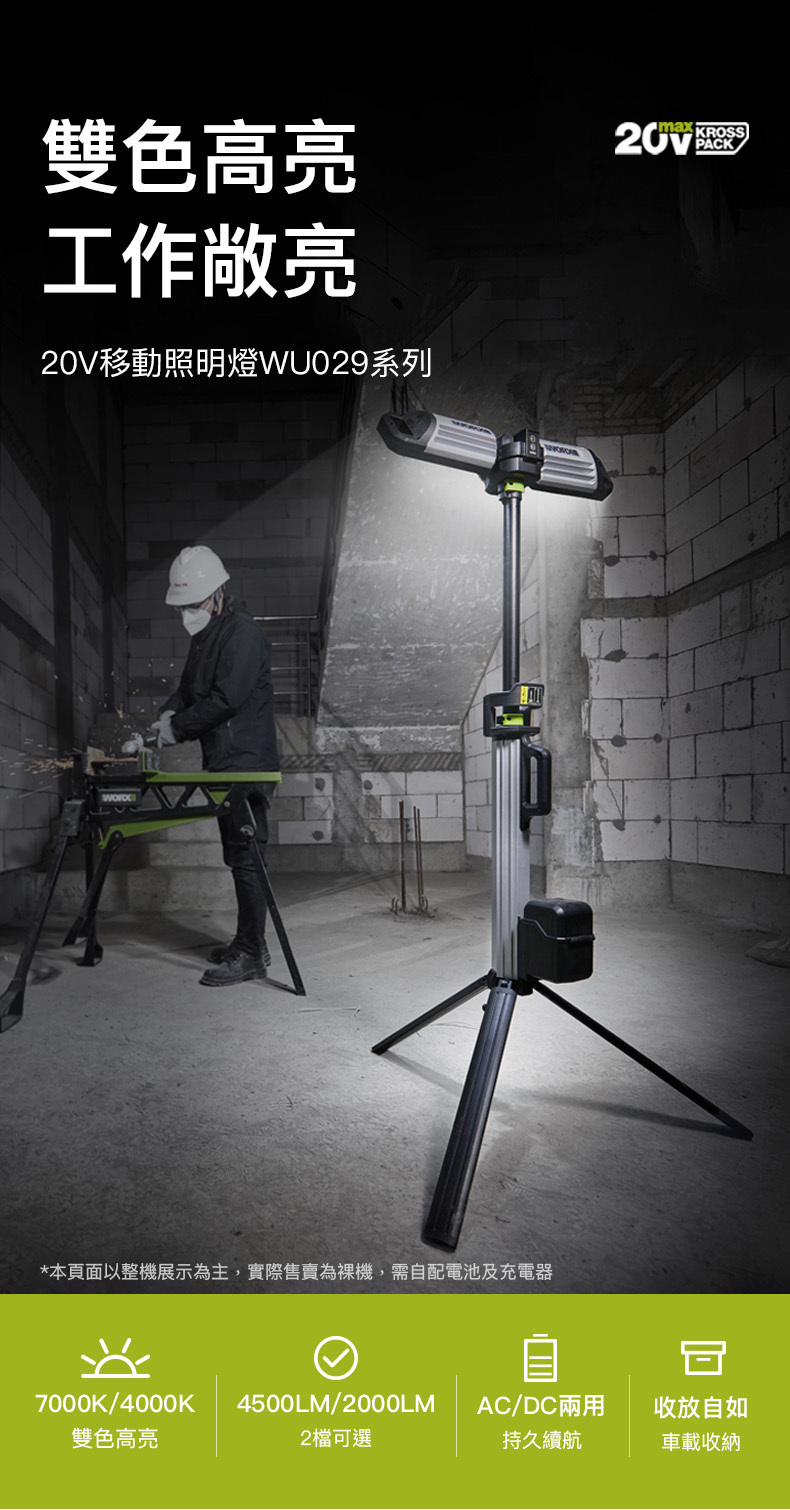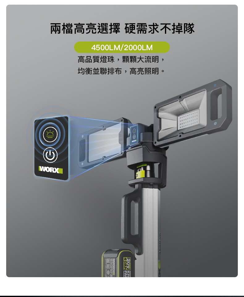 WORX WU029.9 20V 鋰電伸縮工作燈照明燈(淨機)