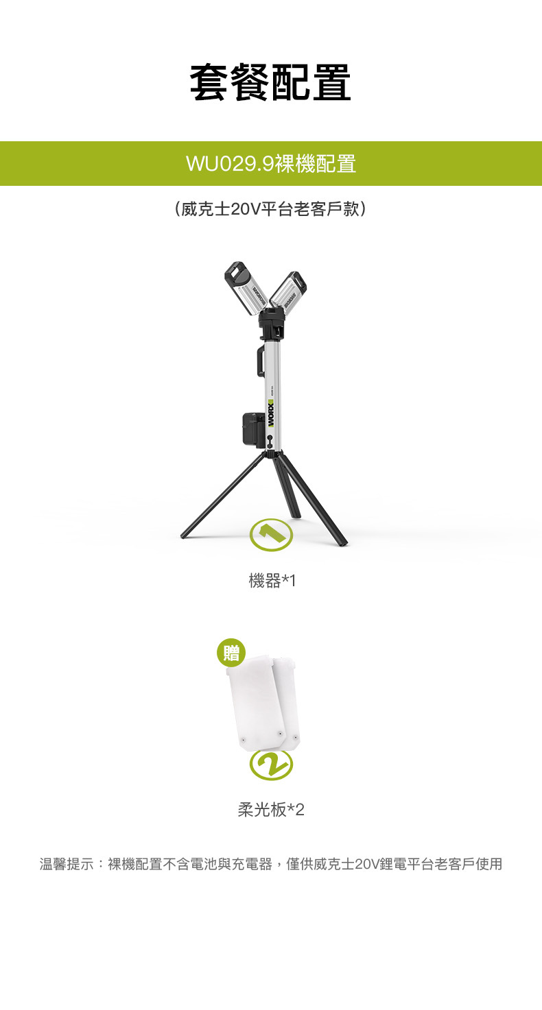 WU029.9 20V 鋰電伸縮工作燈照明燈(淨機)