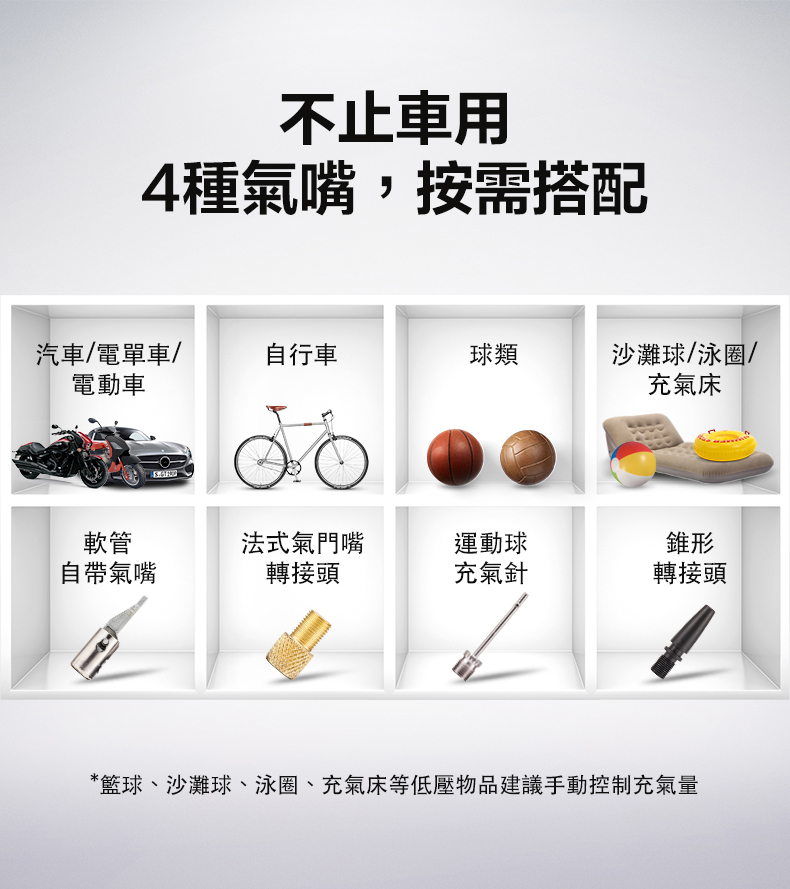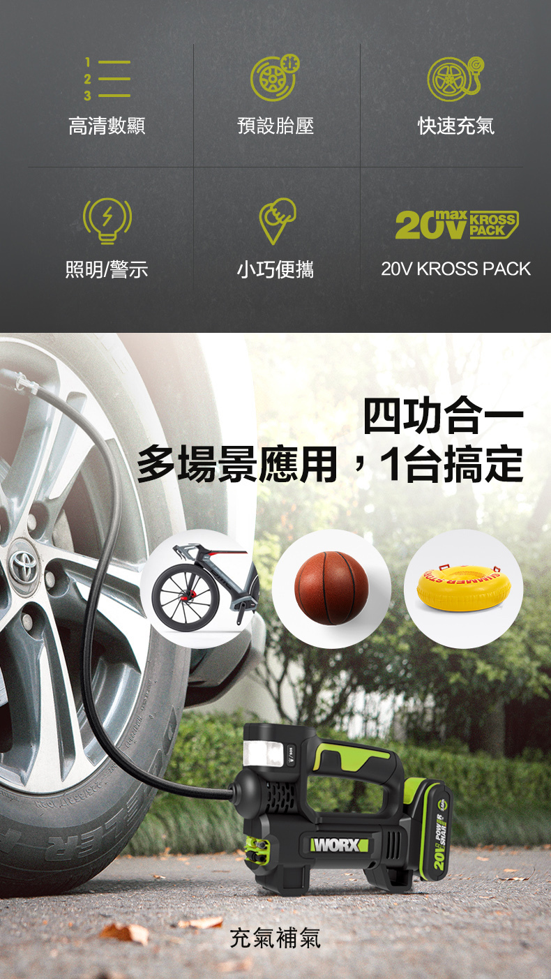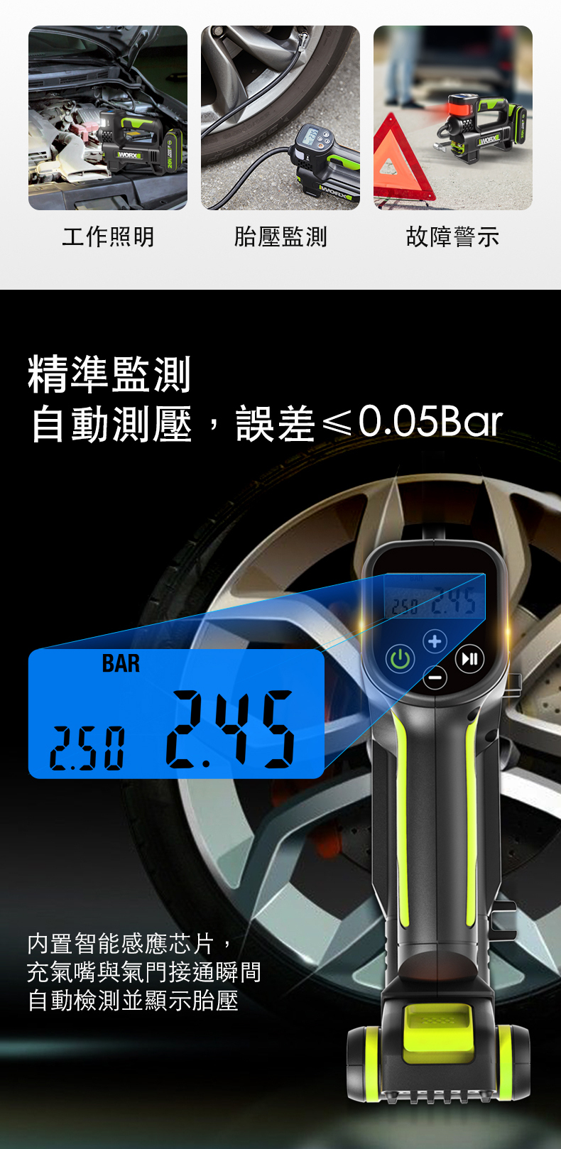 充氣,胎壓監測,工作燈,信號燈四合一功能