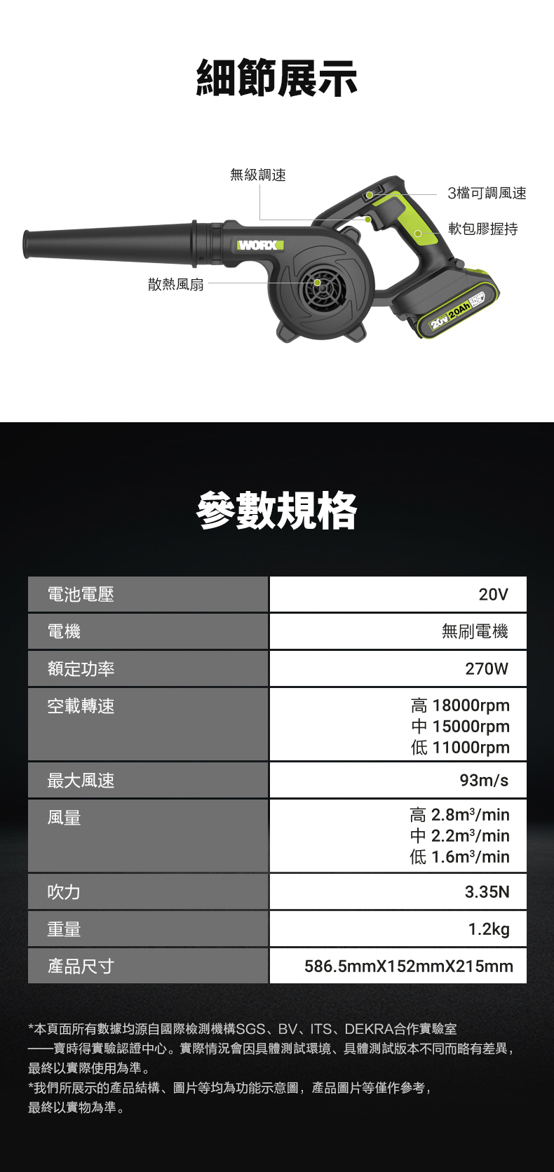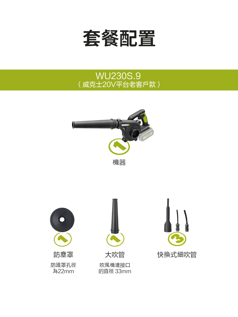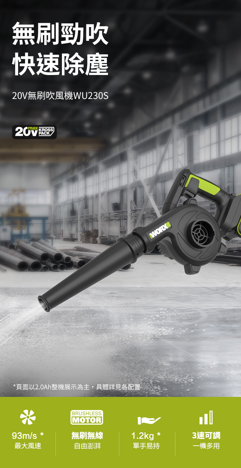 WORX WU230S.9 20V 無刷吹風機 (淨機)