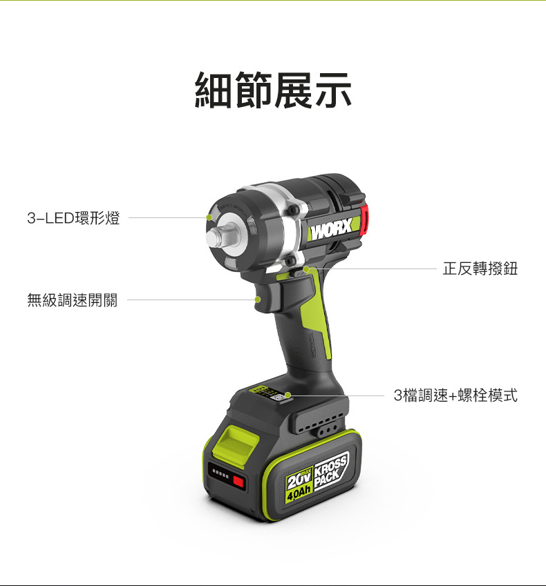 WORX WU270 20V 700牛頓米無刷衝擊扳手