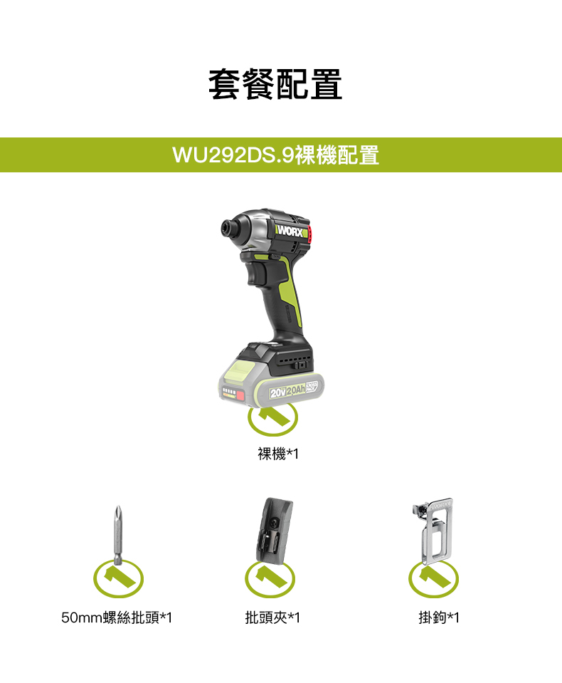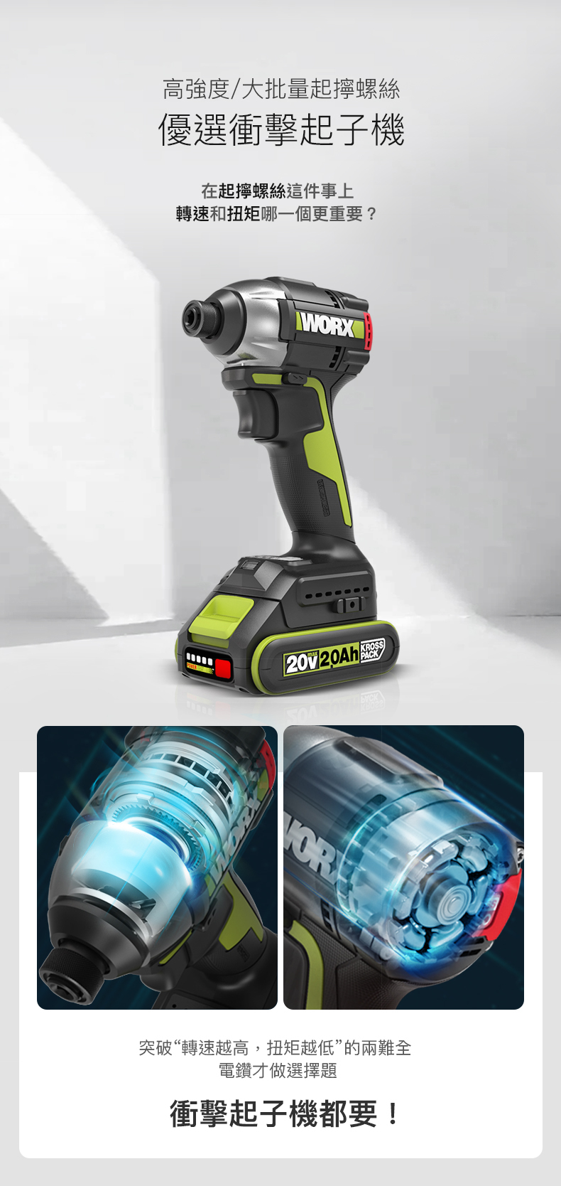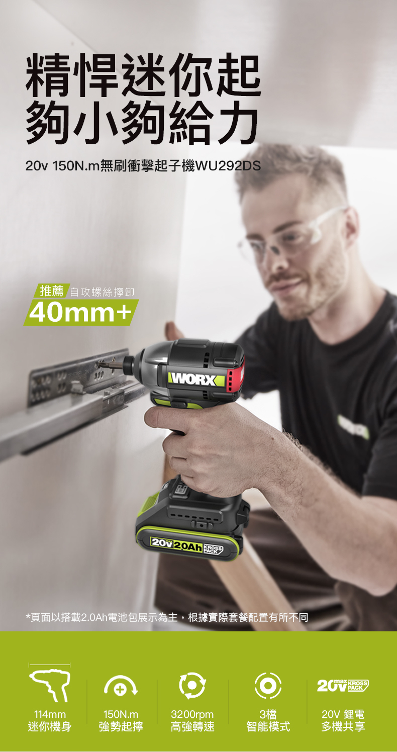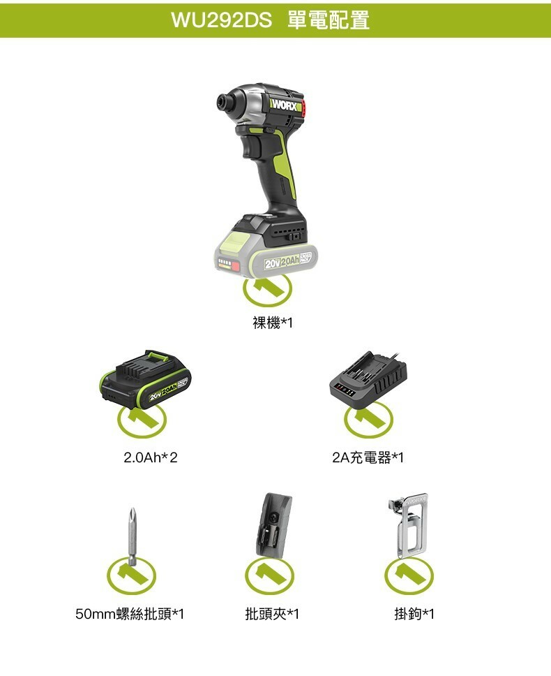 WORX WU292DS 20V 150牛米 無刷超輕起子機