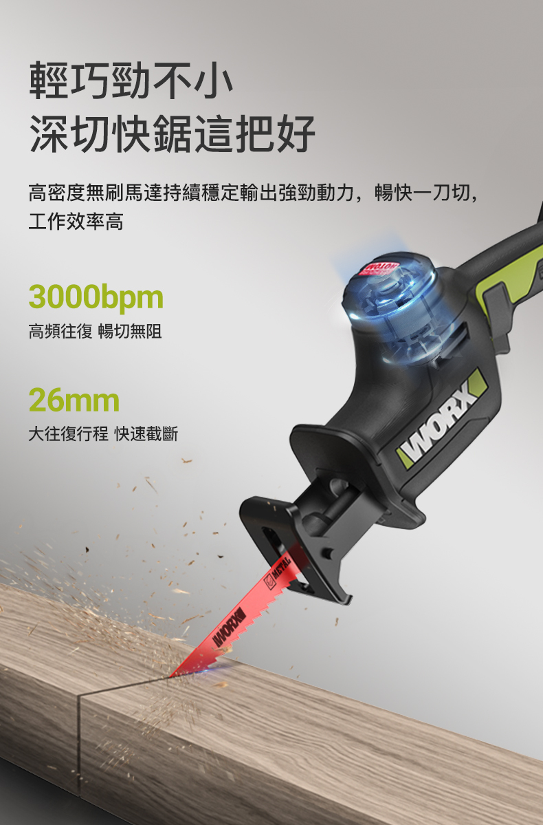 WORX WU500 20V 無刷輕裝老虎鋸