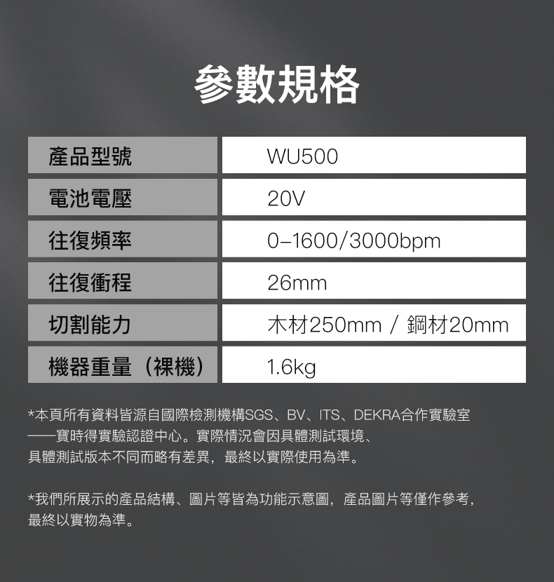 WU500 20V 無刷輕裝老虎鋸