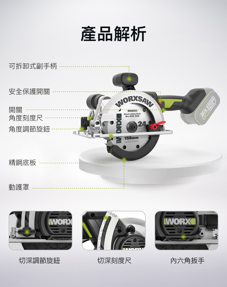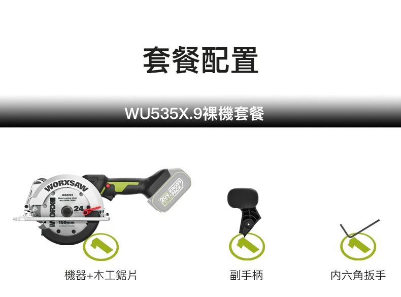WORX WU535X 20V 鋰電150mm電圓鋸