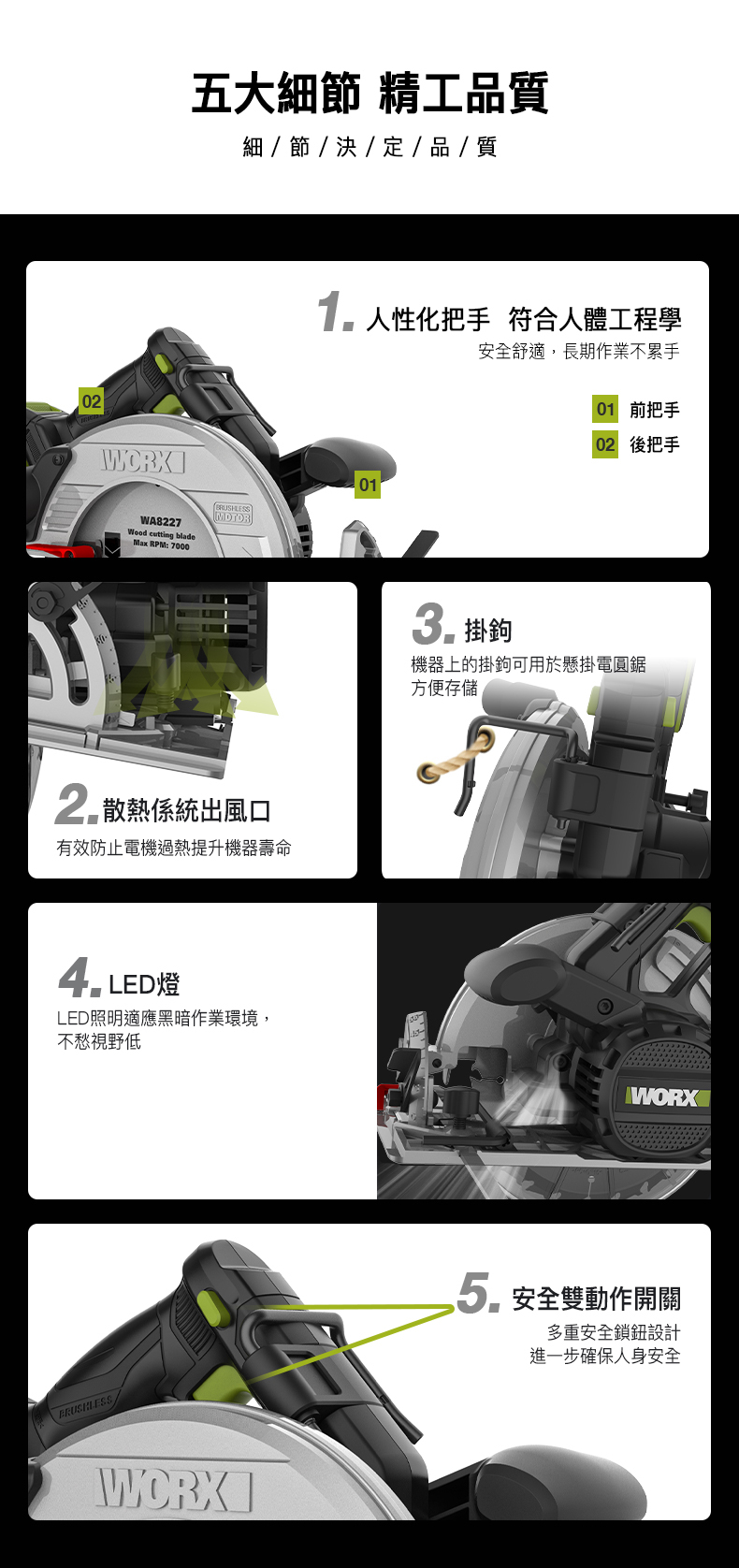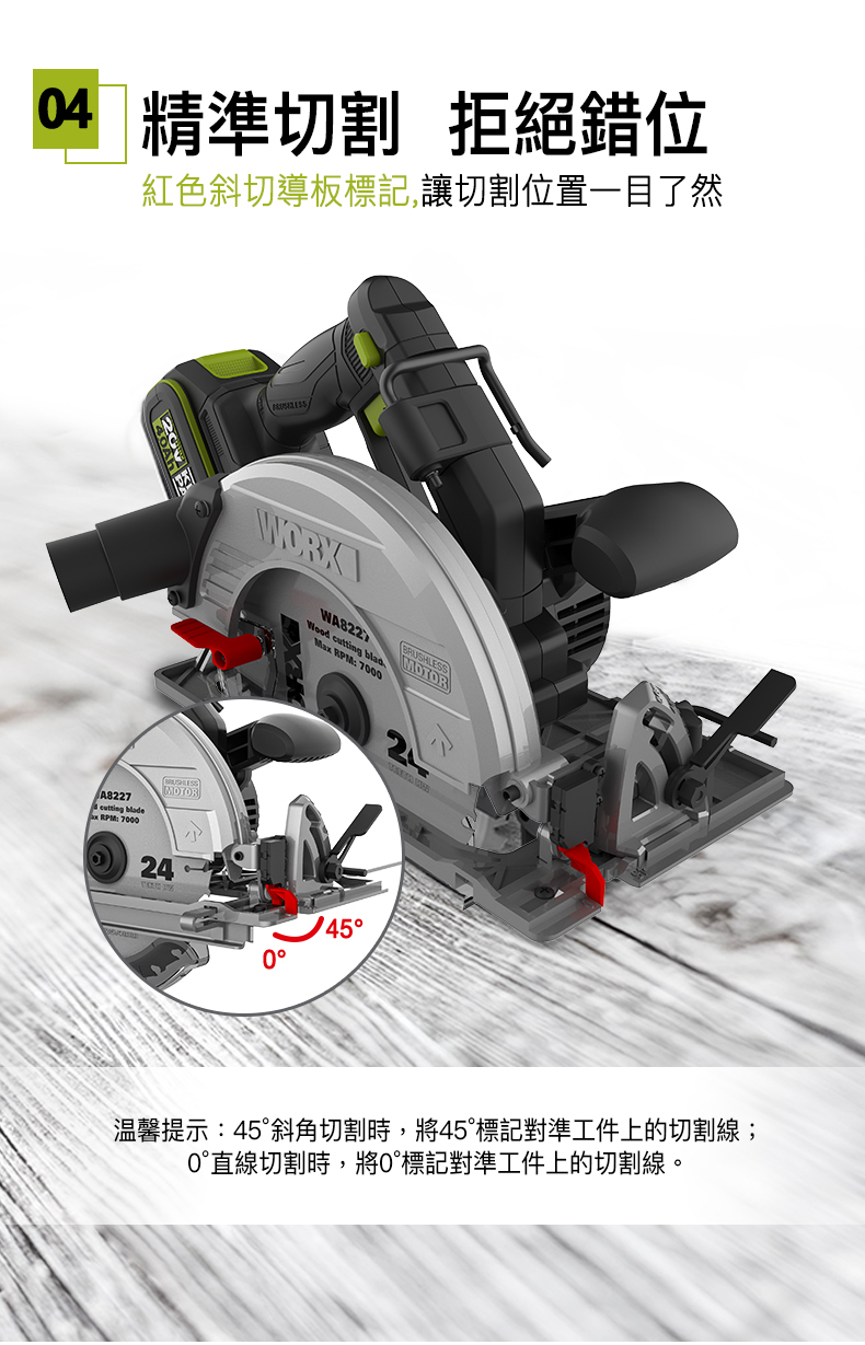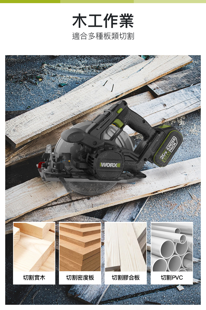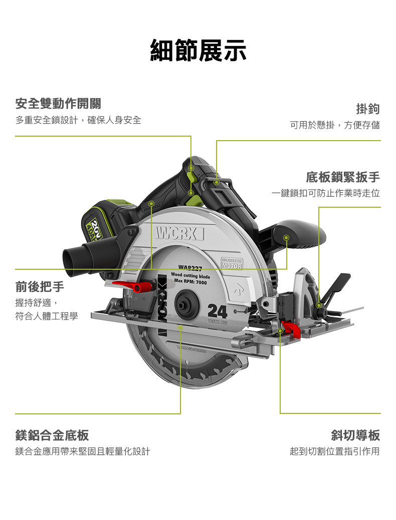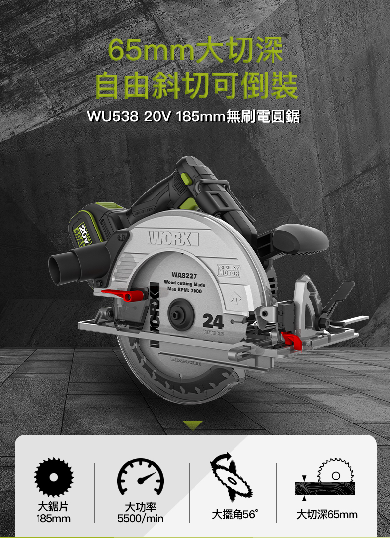 WORX WU538H.9 20V 185mm 無刷電圓鋸 (淨機)