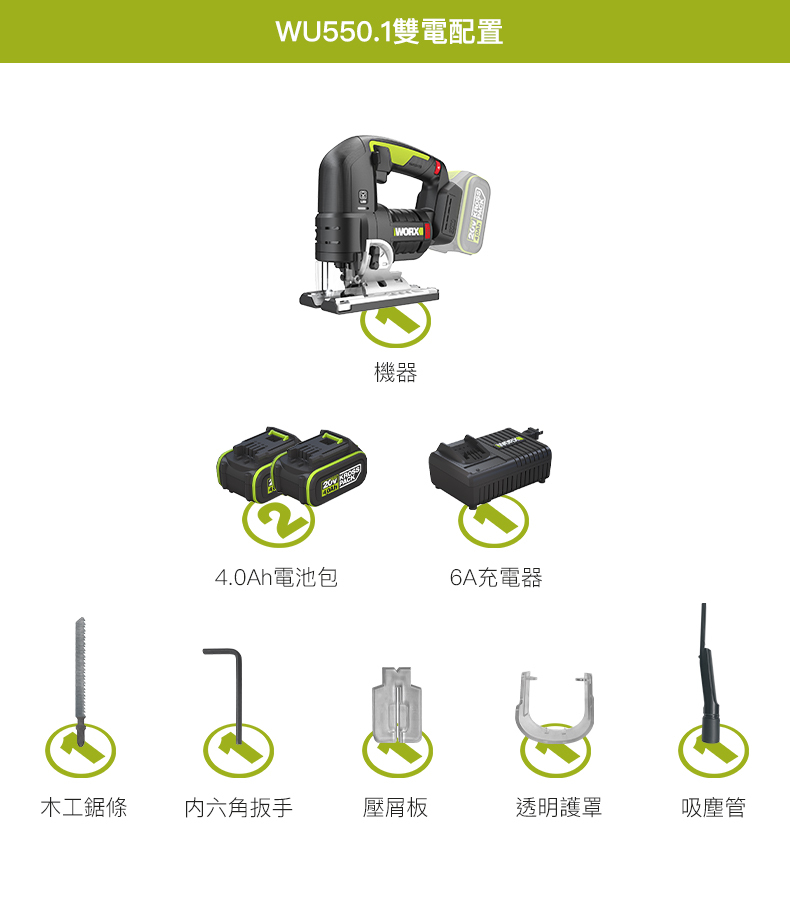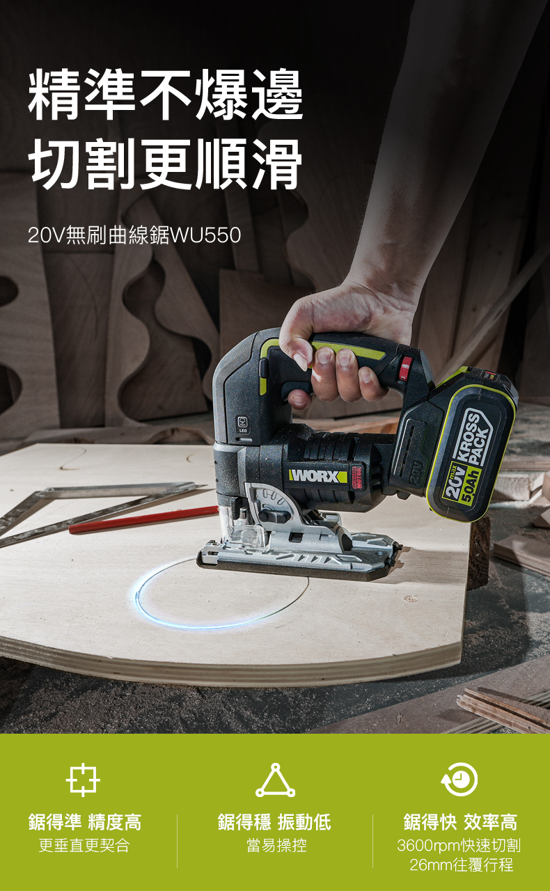 WORX WU550 無刷鋰電曲線鋸