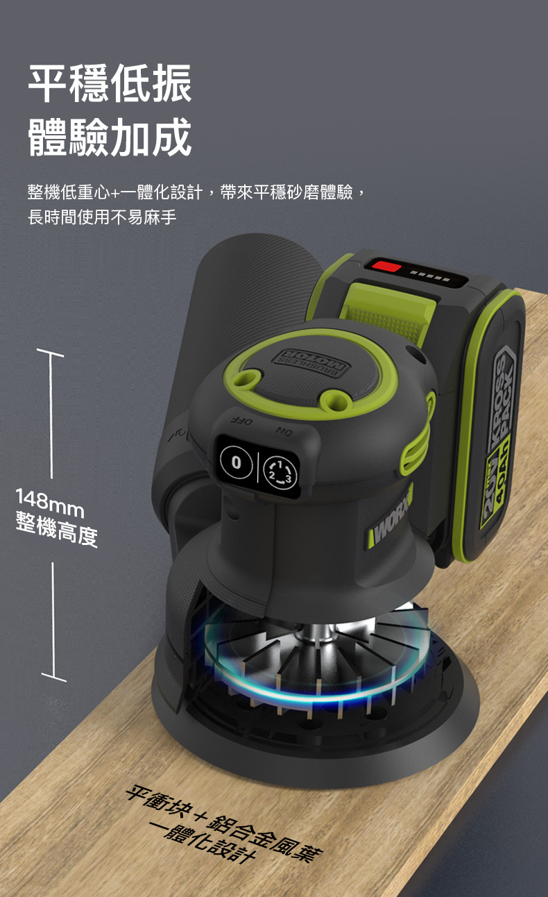 WORX WU657.9 20V無刷 125mm 圓沙機 (淨機)