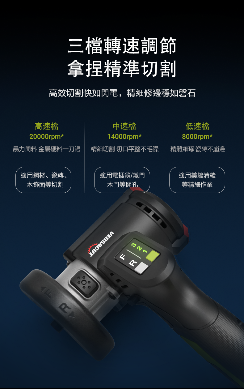 - 三擋轉速調節 8000/ 14000/ 20000rpm