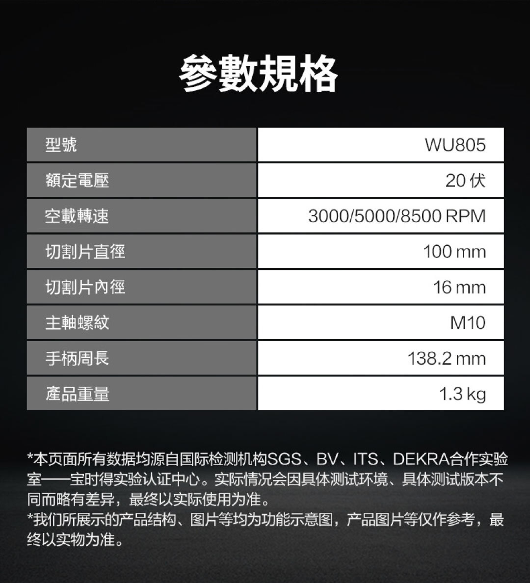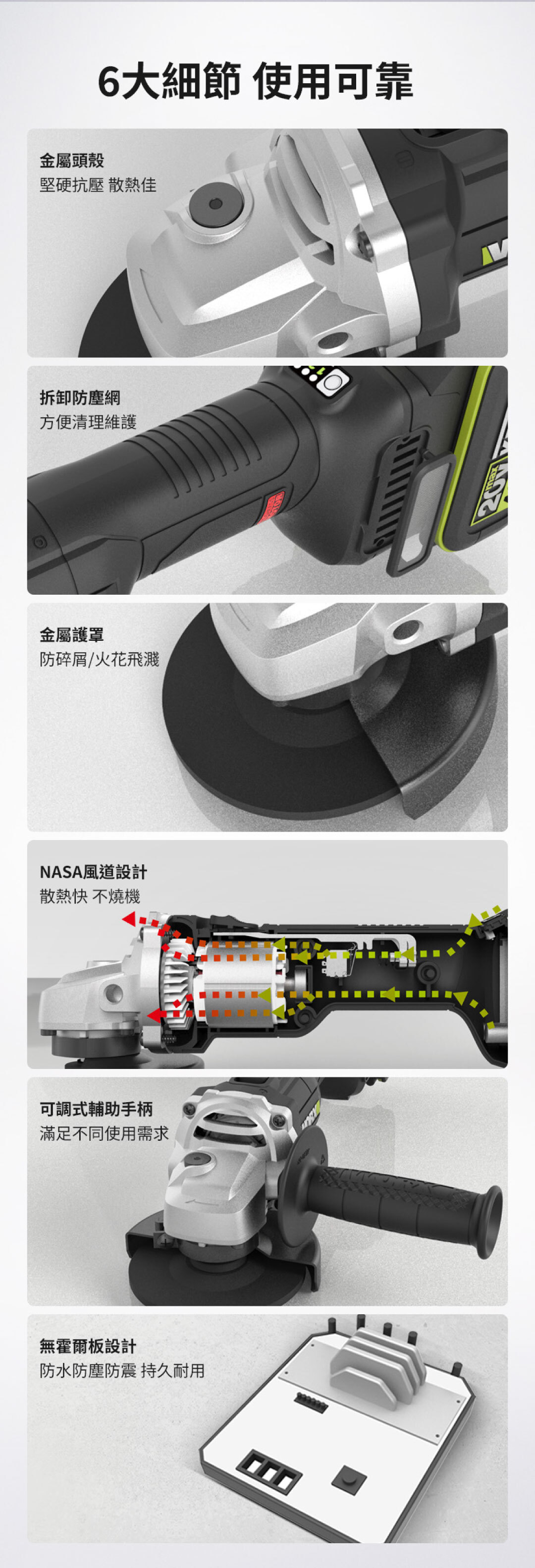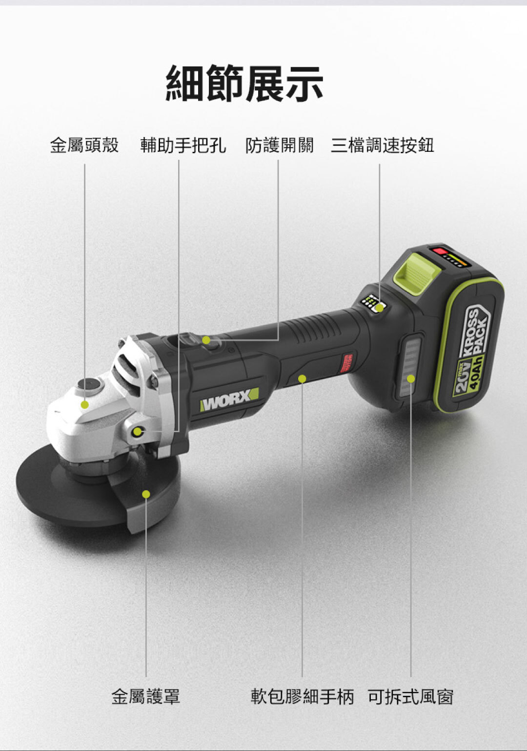 WU805 20V 無刷調速角磨機