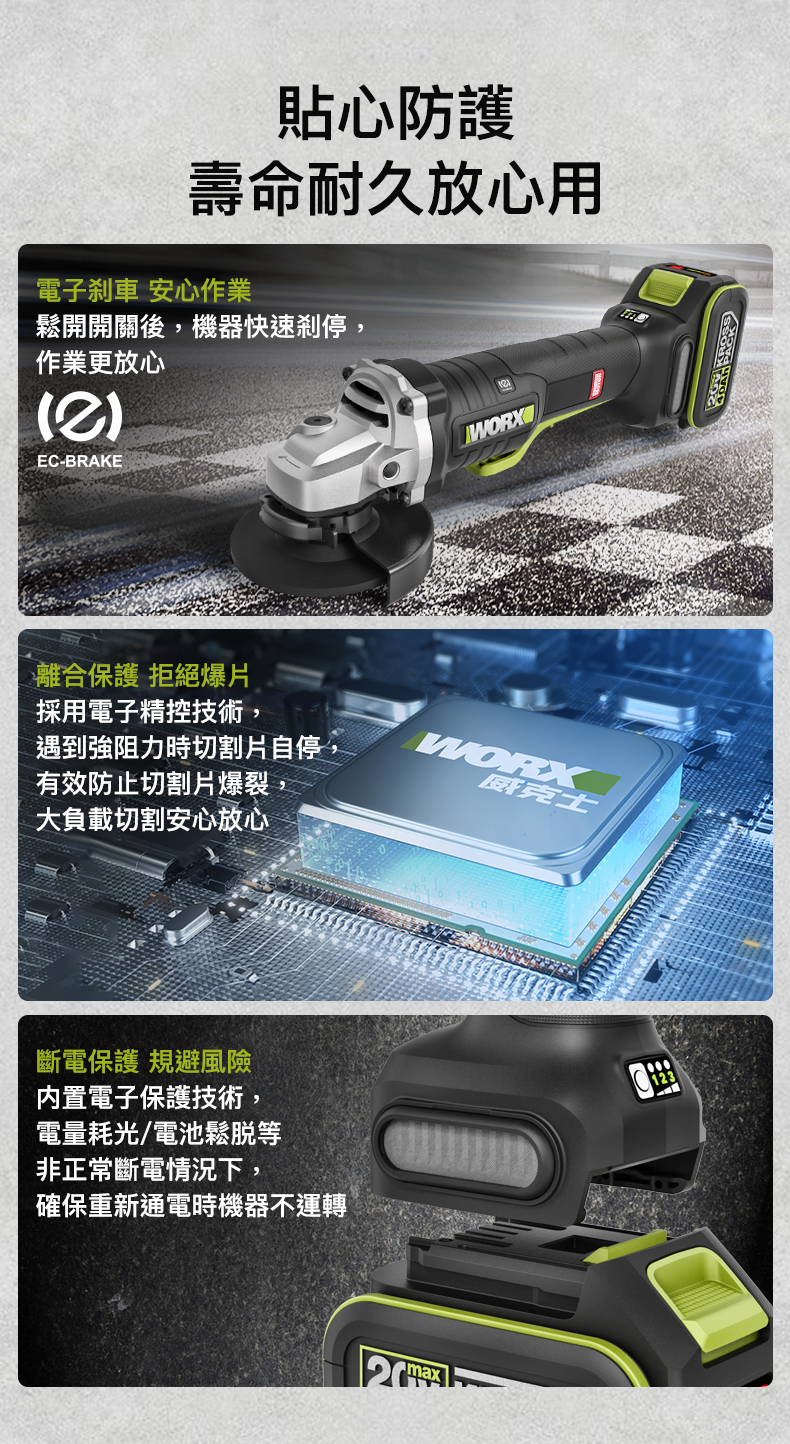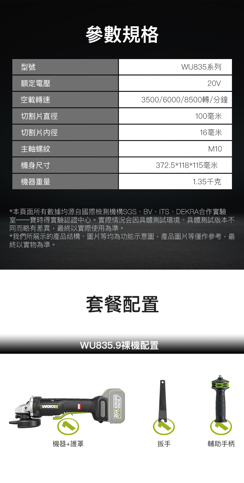 WU835 20V 無刷100mm急停調速磨機 (地盤安全規定使用)