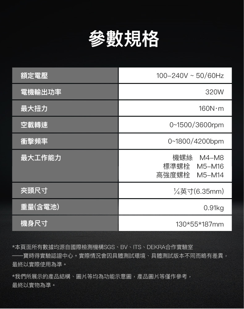 衝擊頻率:1600 / 3500 / 4000 bpm
