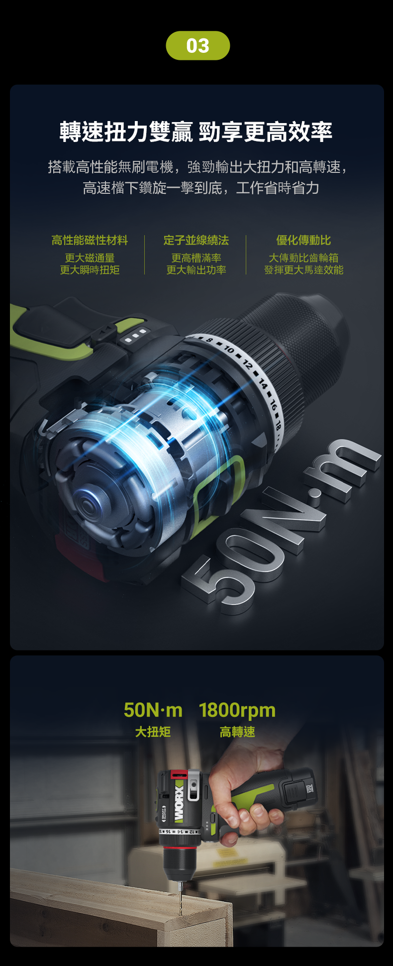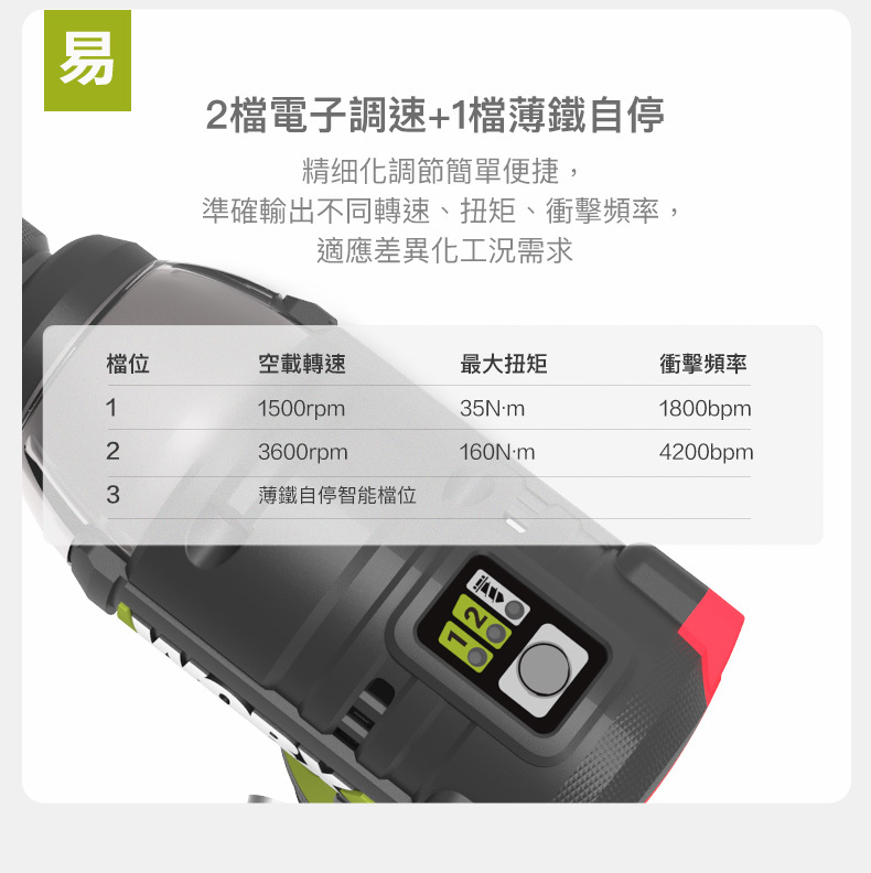 -扭力調節檔位:18+1檔(含鑽木、鑽鐵檔)